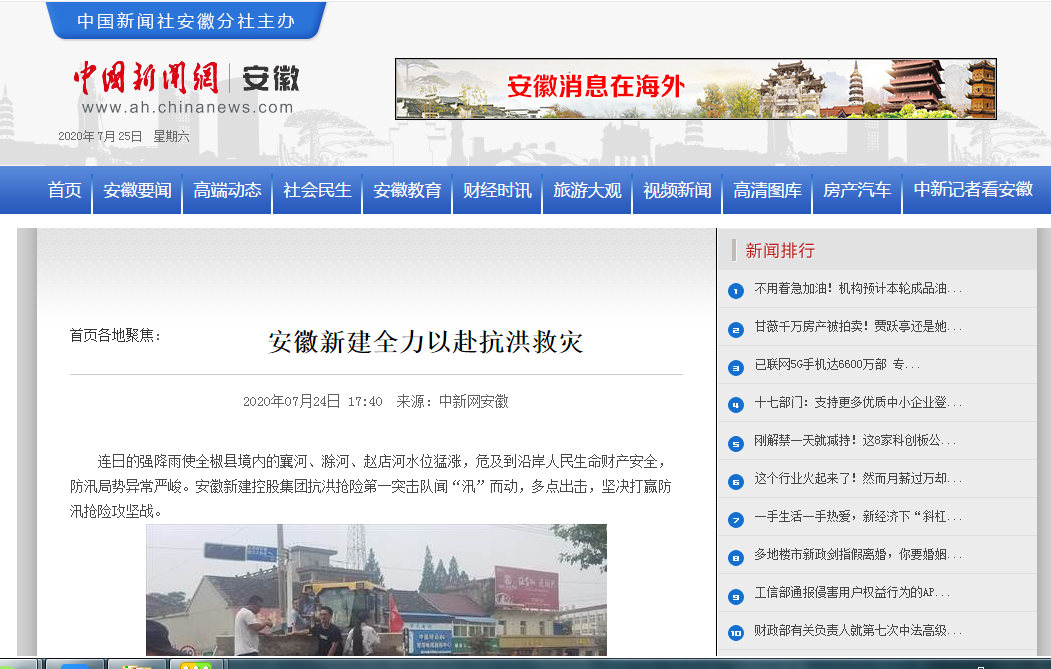 近日,安徽新建控股集團組織動員骨干力量踴躍參加抗洪搶險的事跡,先后被人民日報數字安徽網、中國新聞網、中國網、中國經濟新聞聯播網、徽商網、安徽消費網等各級媒體刊發(fā),充分展示了安徽新建人的社會責任與擔當,極大鼓舞了全公司廣大員工的士氣。