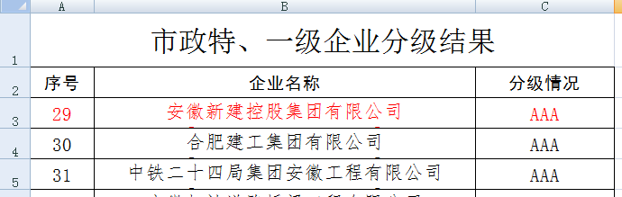 合肥市城鄉(xiāng)建設(shè)局依據(jù)《關(guān)于開(kāi)展合肥市施工總承包企業(yè)、勘察設(shè)計(jì)企業(yè)、施工圖審查機(jī)構(gòu)及地下管線測(cè)量單位信用評(píng)價(jià)工作的通知》和《合肥市施工總承包企業(yè)信用評(píng)價(jià)標(biāo)準(zhǔn)(2020第二版)》,合肥市城鄉(xiāng)建設(shè)局2020年(第二次)合肥市施工總承包企業(yè)信用綜合評(píng)價(jià)結(jié)果正式公布。安徽新建控股集團(tuán)有限公司榜上有名,榮獲2020 年(第二次)合肥市政專業(yè)3A級(jí)信用評(píng)級(jí)!