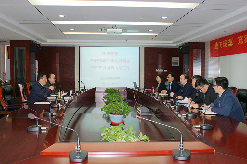 2021年4月12日下午,合肥市城鄉(xiāng)建設(shè)局調(diào)研員王磊,在市政公用管理處有關(guān)領(lǐng)導(dǎo)的陪同下走訪集團(tuán)公司調(diào)研指導(dǎo)工作。集團(tuán)總經(jīng)理王鵬程攜相關(guān)部門負(fù)責(zé)人進(jìn)行了熱情接待并參加座談。