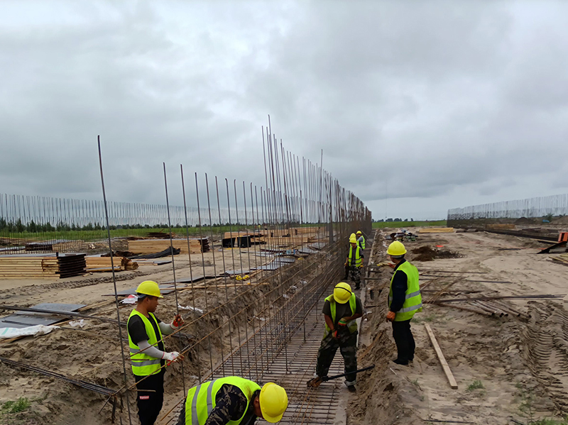 青貯窖墻體綁扎鋼筋