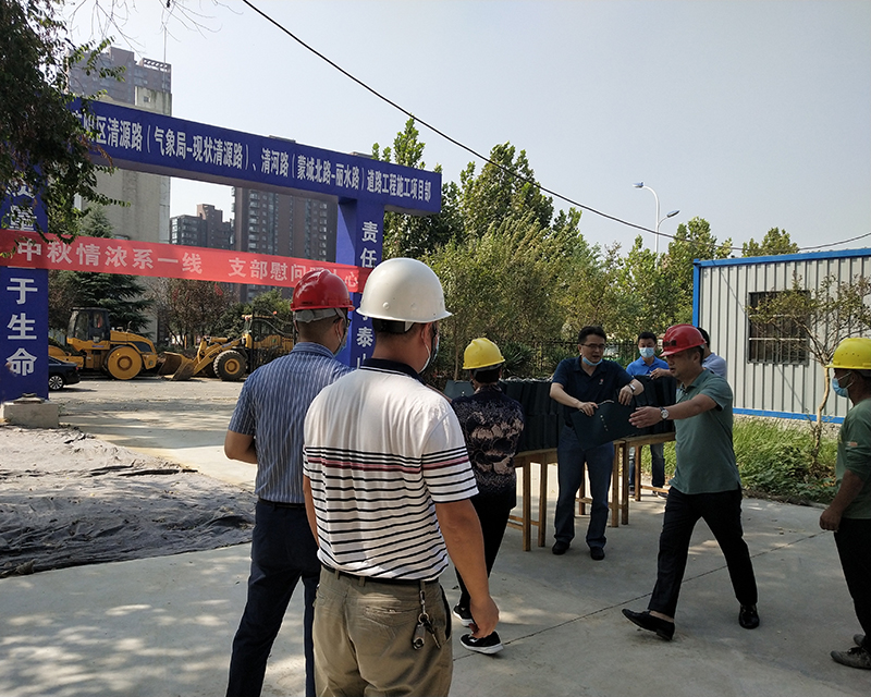 9月18日,在中秋、國慶雙節(jié)來臨之際,廬陽區(qū)重點(diǎn)工程管理中心何平副主任、市政建設(shè)科科長李繼明,在項(xiàng)目臨時(shí)黨支部書記陪同下組成慰問組,來到公司承建的廬陽區(qū)清源路(氣象局-現(xiàn)狀清源路)開展“中秋情濃系一線,支部慰問暖人心”活動(dòng)。