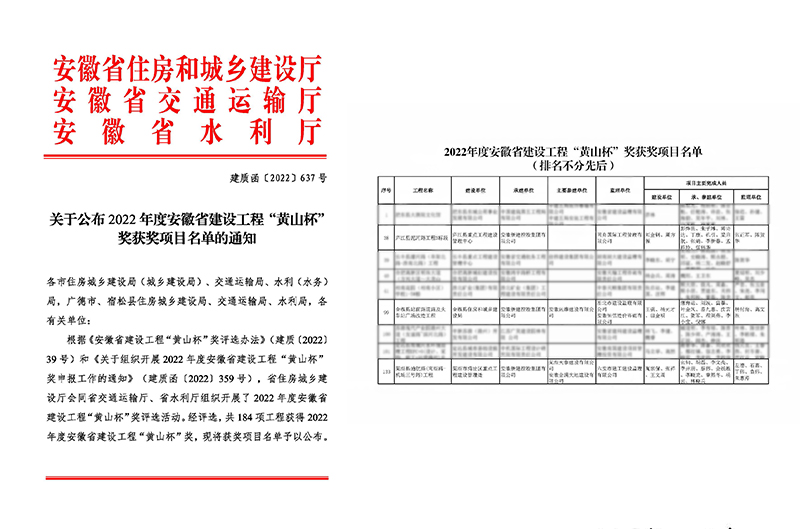 “黃山杯”獎(jiǎng)為安徽省建設(shè)工程質(zhì)量的最高獎(jiǎng),由省住房城鄉(xiāng)建設(shè)廳、省交通運(yùn)輸廳、省水利廳聯(lián)合頒發(fā),每年評(píng)選一次,在提高全省工程質(zhì)量水平上發(fā)揮示范引領(lǐng)作用。公司在承建項(xiàng)目之初,就將“精品工程”作為工程目標(biāo)進(jìn)行實(shí)施,并積極創(chuàng)優(yōu),從策劃、實(shí)施、總結(jié)提煉全過程進(jìn)行控制,并提出了按質(zhì)按量完成各項(xiàng)施工任務(wù)。施工過程中,項(xiàng)目部按照制定的施工組織方案,對(duì)各項(xiàng)工序嚴(yán)格把關(guān),各項(xiàng)技術(shù)指標(biāo)進(jìn)行嚴(yán)格控制,保證了施工質(zhì)量。