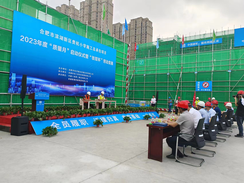 為貫徹、落實好全國“質(zhì)量月”活動,進(jìn)一步深化“增強質(zhì)量意識,推進(jìn)高質(zhì)量發(fā)展”主題,9月6日,集團公司與中建八局二公司聯(lián)合體承建的濱湖新區(qū)貴杭路小學(xué)施工總承包項目組織開展2023年度“質(zhì)量月”暨“鐵軍杯”勞動競賽啟動儀式。包河區(qū)住建局領(lǐng)導(dǎo)、建發(fā)公司、質(zhì)監(jiān)站、安徽科創(chuàng)公司、中建八局二公司等單位負(fù)責(zé)人以及相關(guān)人員參加。