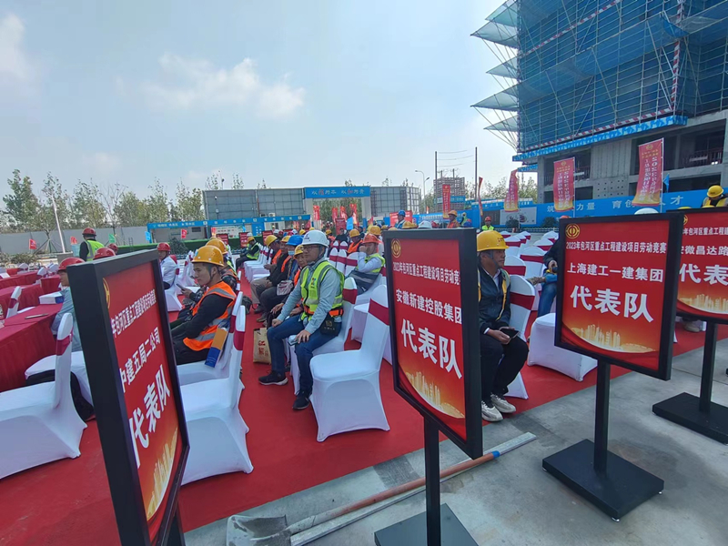 本次勞動競賽由包河區(qū)總工會、包河經(jīng)濟開發(fā)區(qū)管委會、包河區(qū)住建局主辦,活動地點設在滬上人家二期項目工地,參賽人員主要有中建五局二公司、上海建工一建集團、安徽國信建設集團、安徽新建控股集團、安徽昌達路橋公司等建筑施工企業(yè)共計約40人。