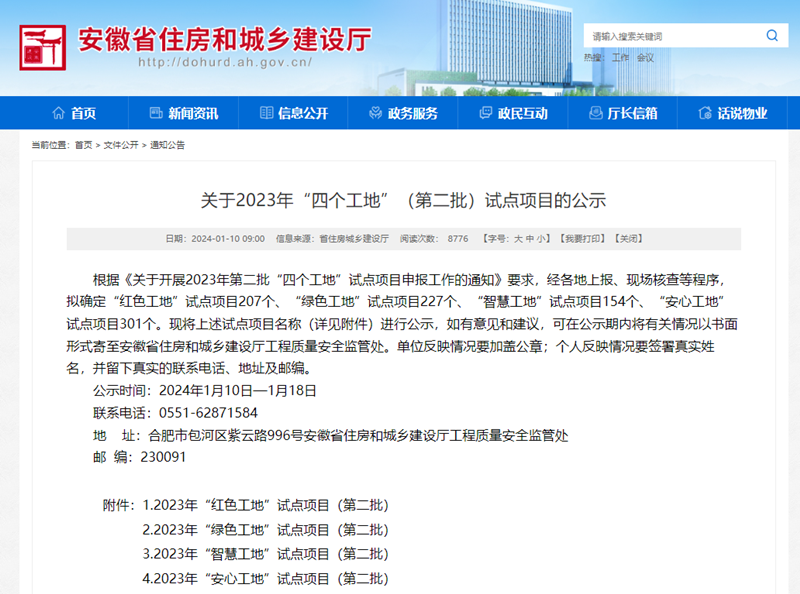 近日,安徽省住房和城鄉(xiāng)建設(shè)廳網(wǎng)站公布了2023年“四個工地”(第二批)試點項目的名單,集團公司承建項目濱湖新區(qū)貴杭小學(xué)、包河區(qū)全民健身中心工程總承包、包河BH202214地塊項目總包工程獲得“紅色工地”試點稱號,其中包河區(qū)全民健身中心工程總承包同時獲評“綠色工地”稱號。