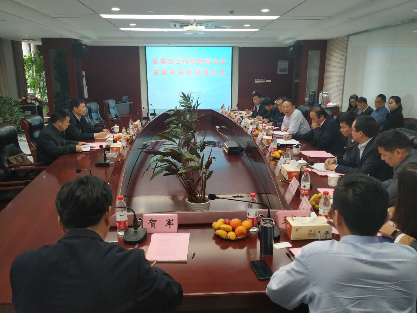 2019年4月28日下午,安徽省工商聯(lián)在我公司舉辦了“安徽省工商聯(lián)民營企業(yè)發(fā)展環(huán)境調(diào)研座談會”。出席會議的有安徽省工商聯(lián)黨組成員、副主席施廣勇、安徽省工商聯(lián)政研室主任李增流,以及安徽省城市基礎(chǔ)設(shè)施投資商會執(zhí)行秘書長陳志武等各位企業(yè)家代表。