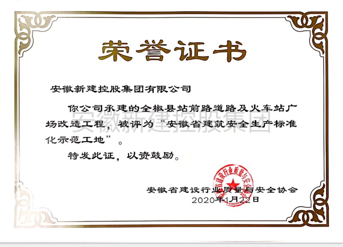 近日,我公司承建的全椒縣站前路道路及火車站廣場(chǎng)改造工程,通過(guò)安徽省建設(shè)行業(yè)質(zhì)量與安全協(xié)會(huì)的嚴(yán)格考評(píng),被評(píng)為“安徽省建筑安全生產(chǎn)標(biāo)準(zhǔn)化示范工地”稱號(hào)。唐海運(yùn)獲“優(yōu)秀項(xiàng)目經(jīng)理”稱號(hào)。